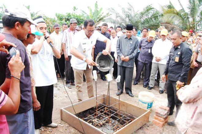Bupati Rohil H Suyatno meletakan Batu pertama pembangunan Masjid Al-Darussalam.