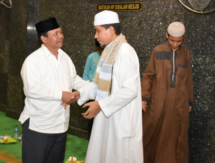 Terlihat juga Ketua Majelis Kerapatan Adat LAMR Kabupaten Bengkalis Zainuddin Yusuf, sejumlah Kepala SKPD/Badan yang ada dilingkungan pemerintahan Kabupaten Bengkalis dan ribuan jamaah memadati Masjid Raya Istiqomah, Bengkalis.(amex)