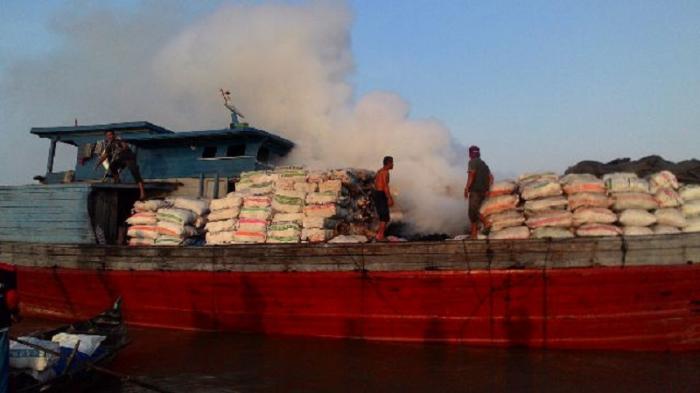Bermuatan Arang 24.000 Karung, Kapal Kayu Terbakar di Perairan Bengkalis