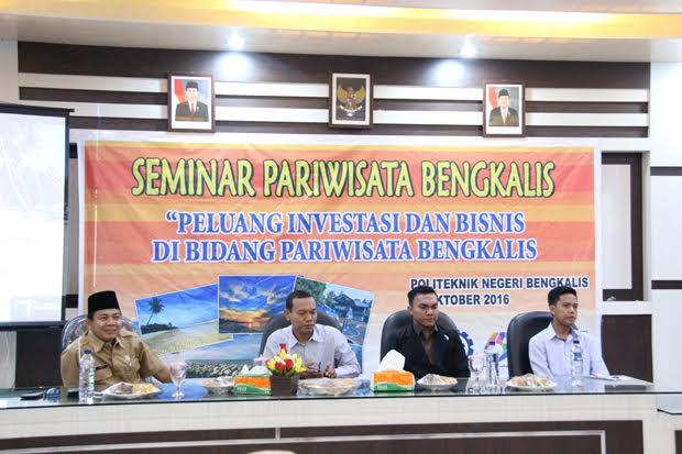 BENGKALIS - Badan Eksekutif Mahasiswa (BEM) Politeknik Negeri Bengkalis dan Dinas Kebudayaan, Pariwisata Pemuda dan Olahraga Kabupaten Bengkalis menyelenggarakan Seminar Pariwisata Bengkalis yang Bertema Yaitu “Peluang Investasi dan Usaha Dibidang Pariwisata Bengkalis”. Acara Seminar ini dilaksanakan di Aula Politeknik Negeri Bengkalis pada hari, Senin (17/10/2016).