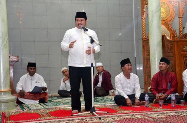 BATU PANJANG, Globalriau.com - Sempena safari Ramadhan 1438 Hijriyah di Masjid Al-Mujahiddin, Kelurahan Batu Panjang, Kecamatan Rupat, Rabu (14/6/2017) malam, Bupati Bengkalis, Amril Mukminin, mengatakan dalam sambutannya, sebuah pembangunan memerlukan kondisi yang kondusif.