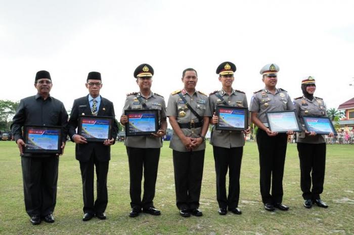 Usai peragaan Bupati Bengkalis sebagai Pembina Pocil Polres Bengkalis yang diwakili Pelaksana Tugas (Plt) Sekretaris Daerah (Sekda) H. Arianto menerima penghargaan dari Kapolda Riau yang diserahkan langsung oleh Wakapolri, Komjen Syafruddin.