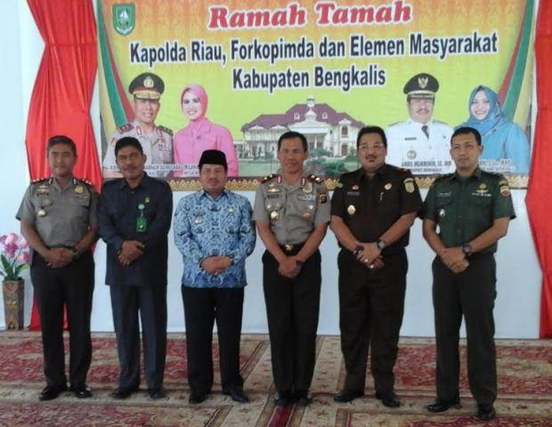 BENGKALIS - Kapolda Riau Irjen Pol Zulkarnain, Jumat (17/03/2017) melakukan sejumlah rangkaian kegiatan di Kabupaten Bengkalis diantaranya ramah tamah antara Kapolda Riau dan rombongan kepada Forkopimda dan elemen masyarakat di kabupaten Bengkalis.