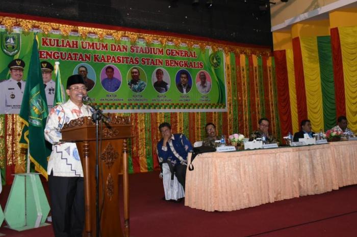 BENGKALIS – Bupati Bengkalis Amril Mukminin menyambut baik dan memberikan apresiasi setinggi-tingginya terhadap akivitas Sekolah Tinggi Agama Islam Negeri (STAIN) Bengkalis, atas penyelenggaraan kuliah umum dan stadium general penguatan kapasitas kampus. Terlebih, narasumber yang dihadirkan untuk mengisi kegiatan itu adalah orang-orang hebat dari penjuru nasional.