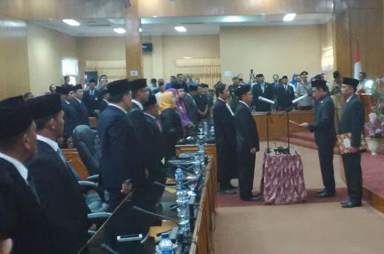 BENGKALIS- Ketua DPRD Bengkalis Heru Wahyudi resmi melantik Morison Bationg Sihite sebagai Pengganti Antar Waktu (PAW) Anggota DPRD Bengkalis dari Partai Demokrat (PD) menggantikan Sulaiman Zakaria di Gedung DPRD Bengkalis, Selasa (26/7/16) Sulaiman Zakaria di-PAW menyusul mengundurkan diri menjadi peserta Pilkada calon Bupati Bengkalis periode 2015-2019.