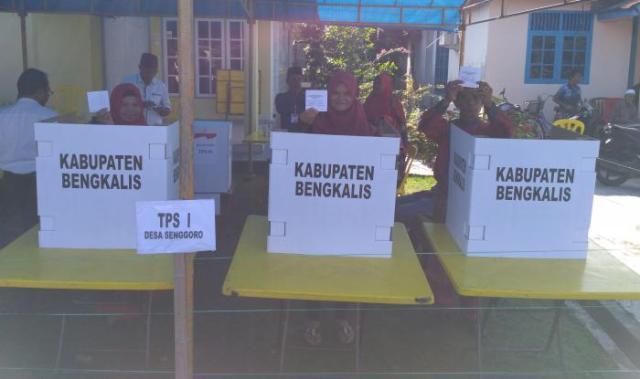 BENGKALIS, Globalriau.com - Calon Kepala Desa (Cakades) Senggoro, Kecamatan Bengkalis, nomor urut 3 Mustafa Kamal menyalurkan hak pilihnya di Tempat Pemungutan Suara (TPS) 01 Jalan Panglima Minal, Selasa (11/7/2017) pagi.