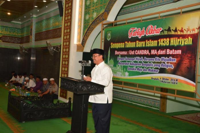 Diwakili Pelaksana Tugas Sekretaris Daerah, H Arianto, penjelasan itu disampaikan Amril, ketika memberikan sambutan pada acara tabligh akbar yang digelar sempena tahun baru 1438 H, Kamis (6/10/2016) malam.