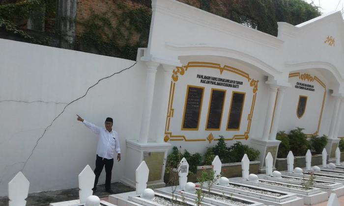 Dia mengaku bahwa kemerengan dinding Taman Makam Pahlawan saat ini sudah mencapai 15 drajat dan tinggal menunggu waktunya roboh.Untuk itu dirinya menyarankan dinas terkait cepat mengambil sikap.