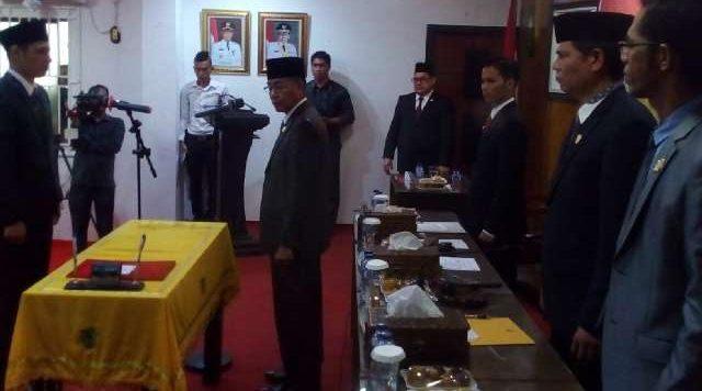 Acara tersebut berlangsung di ruang sidang paripurna DPRD Rohil,Jalan Merdeka,Senin (14/03/16).Sidang Paripurna dengan agenda pengambilan sumpah dipimpin Wakil Ketua III DPRD Drs.Syafruddin.MM didampingi Wakil Ketua II Abdul Kosim.SE.
