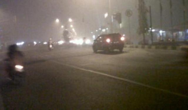 Kabut asap yang diikuti bau menyengat dan dapat memedihkan mata itu diduga berasal dari pembakaran hutan dan lahan yang terjadi sejak dua pekan belakangan.