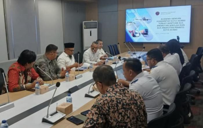 JAKARTA – Langkah strategis Pemerintah Kota Dumai dalam mendorong penguatan sektor transportasi dan logistik mendapat perhatian serius di Kementerian Perhubungan Republik Indonesia, Rabu (11/2/2026). Kunjungan yang dipimpin Sekretaris Daerah Kota Dumai, Fahmi Rizal, S.STP., M.Si, itu turut didominasi kehadiran Direktur PT Pelabuhan Dumai Berseri (PDB) Perseroda, Lukman, S.E.