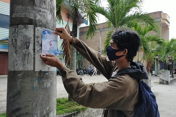 DUMAI, globalriau.com - Mahasiswa kuliah kerja nyata (KUKERTA) dari Universitas Riau (UNRI) di Kecamatan Dumai Selatan melakukan pemasangan leaflet pada tiga kelurahan, Minggu (05/07/2020).