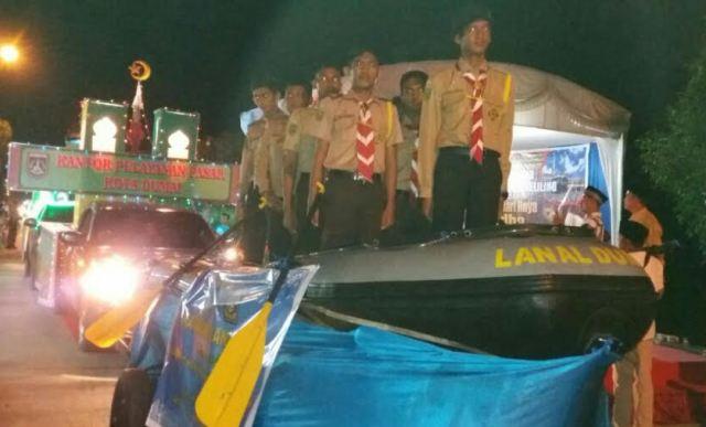Disaat semua peserta menghias mobil dengan dekorasi miniatur Masjid, namun Pramuka Saka Bahari Pangkalan TNI AL (Lanal) Dumai hadir dengan menggunakan perahu karet diatas karavan yang dihias dan ditarik dengan kendaraan jeep.