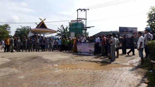 DUMAI - Puluhan warga dari kelurahan Bukit Timah dan Mekar Sari melakukan aksi damai dengan membawa spanduk bertuliskan Aksi Damai 191, masyarakat memblokir jalan tepat di simpang Bukit Timah dekat pos Retribusi Dinas perhubungan, pada kamis pagi (19/01/17).