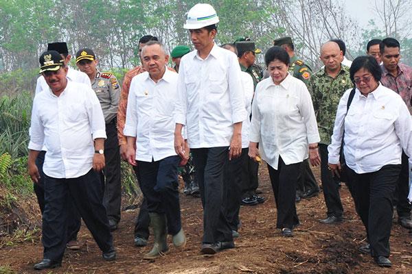 Bupati Kampar H Jefry Noer mendampingi Presiden RI Joko Widodo berserta para mentri saat meninjau kebakaran hutan dan lahan di wilayah Pemkab kampar beberapa waktu lalu.