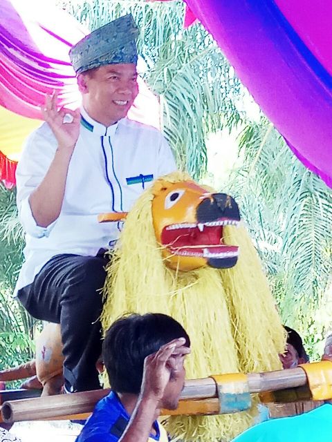 Firdaus Diarak dengan Singa Depok oleh Masyarakat Kampung Bayas Jaya Inhil