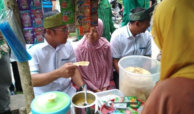 Pondok Lesehan Kelapa Muda milik Pak Djarot tengah ramai dikunjungi pembeli. Melihat kedatangan calon Gubernur Riau, warga setempat langsung mendekat. Tidak sedikit yang minta foto bersama.