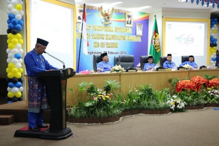 KAMPAR- Dewan Perwakilan Rakyat Daerah (DPRD) Kabupaten Kampar menggelar rapat paripurna Hari Ulang Tahun Kampar ke 66 di Gedung Aula DPRD Kampar, Sabtu (06/02/16).