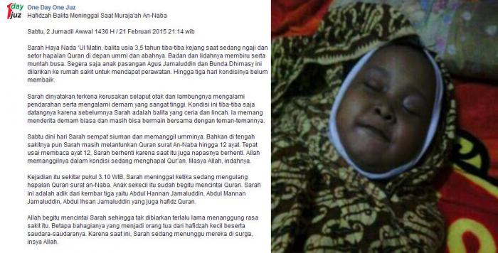 Balita Ini Meninggal Usai Bacakan Hafalan Surat An-Naba