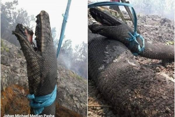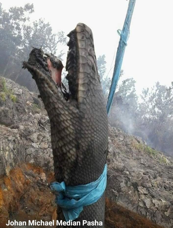 Ular langka yang menjadi korban kebakaran itu adalah piton yang selama ini sering disebut sebagai Anaconda Indonesia. Hal ini diketahui dari foto yang diunggah Johan Michael Median Pasha di akun Facebooknya.