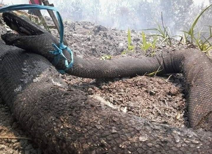 Begini Kondisi Ular "Anaconda" Kalimantan Akibat Kebakaran Hutan