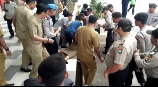Karena aksi demonstrasi yang berujung ricuh dan dorong dorongan membuat Mardiana diduga shock dan terjatuh sehingga mengalami benturan kelantai kemudian Mardiana dilarikan ke RSUP.