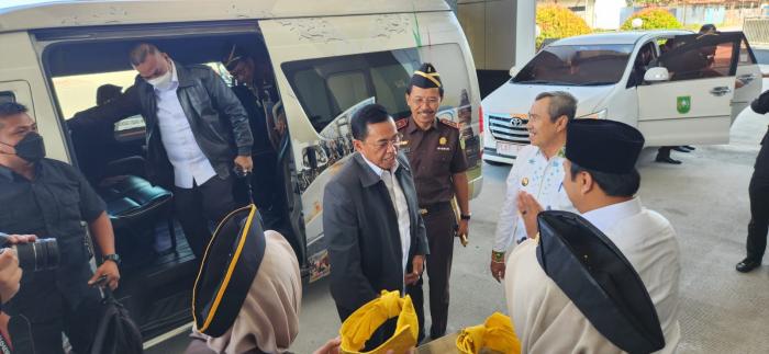 PEKANBARU - Kepala Kejaksaan Tinggi Riau Dr. Supardi menyambut kedatangan Wakil Jaksa Agung Republik Indonesia Dr. Sunarta beserta rombongan dalam rangka Kunjungan Kerja di Provinsi Riau, Kamis (16/02/2023) sekira pukul 09.15 Wib bertempat di VIP Lancang Kuning Bandara Sultan Syarif Kasim II Kota Pekanbaru Provinsi Riau.