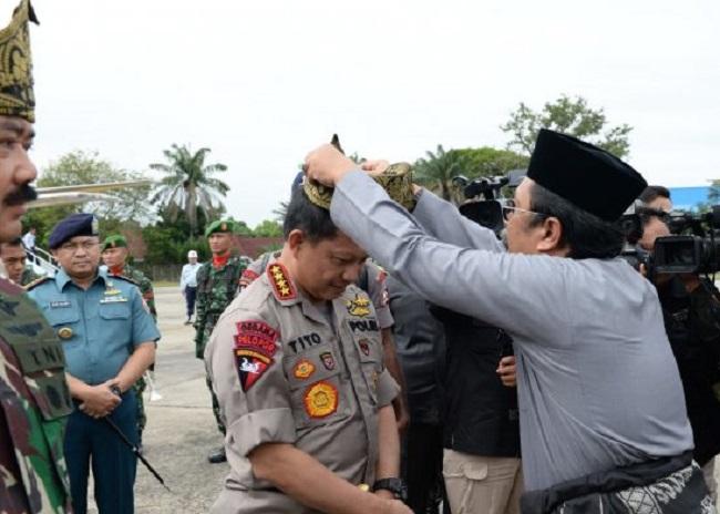 Sampai di Riau, Panglima TNI dan Kapolri Diberikan Tanjak
