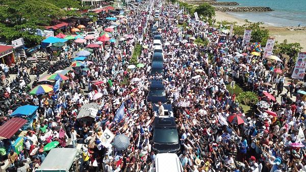 Cawapres nomor urut 02 ini mengaku tidak menyangka antusiasme masyarakat Sumbar sangat luar biasa meyambutnya, meskipun di bawah terik matahari yang begitu menyengat. Pasalnya, lokasi kampanye Prabowo hari ini tepat di samping Pantai Padang.