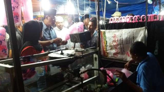 "Ramai juga ya pasar rakyat malam ini, saya bangga sekali." puji Bupati Suyatno sambil bercanda dengan pedagang dan pengujung pasar rakyat.