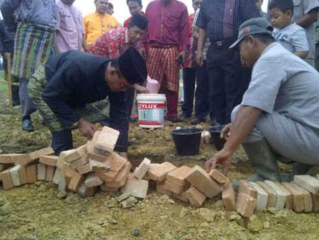 ROHIL- Bupati Rohil letakkan batu pertama pembangunan Pendidikan Diniyah Takmiliyah Awaliyah (PDTA) Ar Raudha PTPN V Kebun Tanjung Medan. Dia juga menyumbang Rp30 juta, uang honor yang diterimannya dari Dispenda.