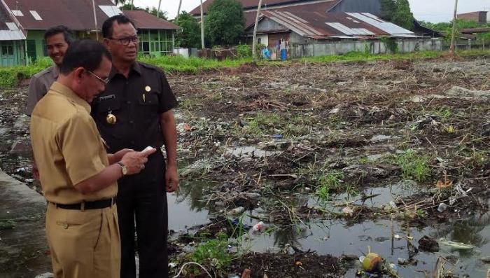 BAGANSIAPIAPI- Bupati Rokan Hilir H.Suyatno tinjau pembersihan dan pembekoan lahan yang ada di belakang Pusat Jajanan Serba Ada ( Pujasera),Jalan Pulau Baru,Rabu ( 06/01/16) .Lahan tersebut direncanakan akan di jadikan Lapangan terbuka untuk masyarakat umum.Seperti Kampanye dan Olahraga.