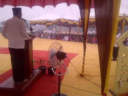 Bupati Suyatno juga menyampaikan program pembangunan yang sedang berjalan, diantaranya pembangunan jalan Mahato-Simpang Manggala, 83 KM, sekarang dibangun 2 KM menggunakan dana Provinsi Riau.