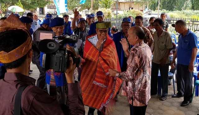 BAGANSINEMBAH, Globalriau.com - Calon Wakil Gubernur Riau nomor urut tiga, H Rusli Effendi, hari ini Minggu (1/4/2018) melakukan kampaye dialogis di Kepenghuluan Bagan sinembah Barat, Kecamatan Sinembah Raya, Kabupaten Rokan Hilir. Kehadiran Rusli dan rombongan disambut hangat warga dengan mengalungkan Ulos, kain adat khas Batak.