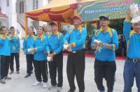Bupati Rokan Hilir, Suyatno melepas secara resmi pawai taaruf Pekan Ilmiah Olahraga dan Seni (PIOS) ke V wilayah Kopertais XII Riau-kepri di halaman kantor Bupati Rohil, Jalan merdeka, Bagansiapiapi, Senin (9/11). Pawai Taaruf ini merupakan salah satu bag