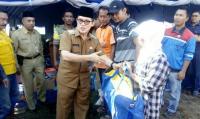 Wali Kota Dumai, H. Zulkifli As di dampingi Kepala Dinas Sosial dan Kepala BPBD Kota Dumai memberikan bantuan kepada korban yang terkena dampak Angin Puting Beliung, pada Senin (5/9) sore di Rt.02 Kelurahan Teluk Makmur, Kecamatan Medang Kampai.
